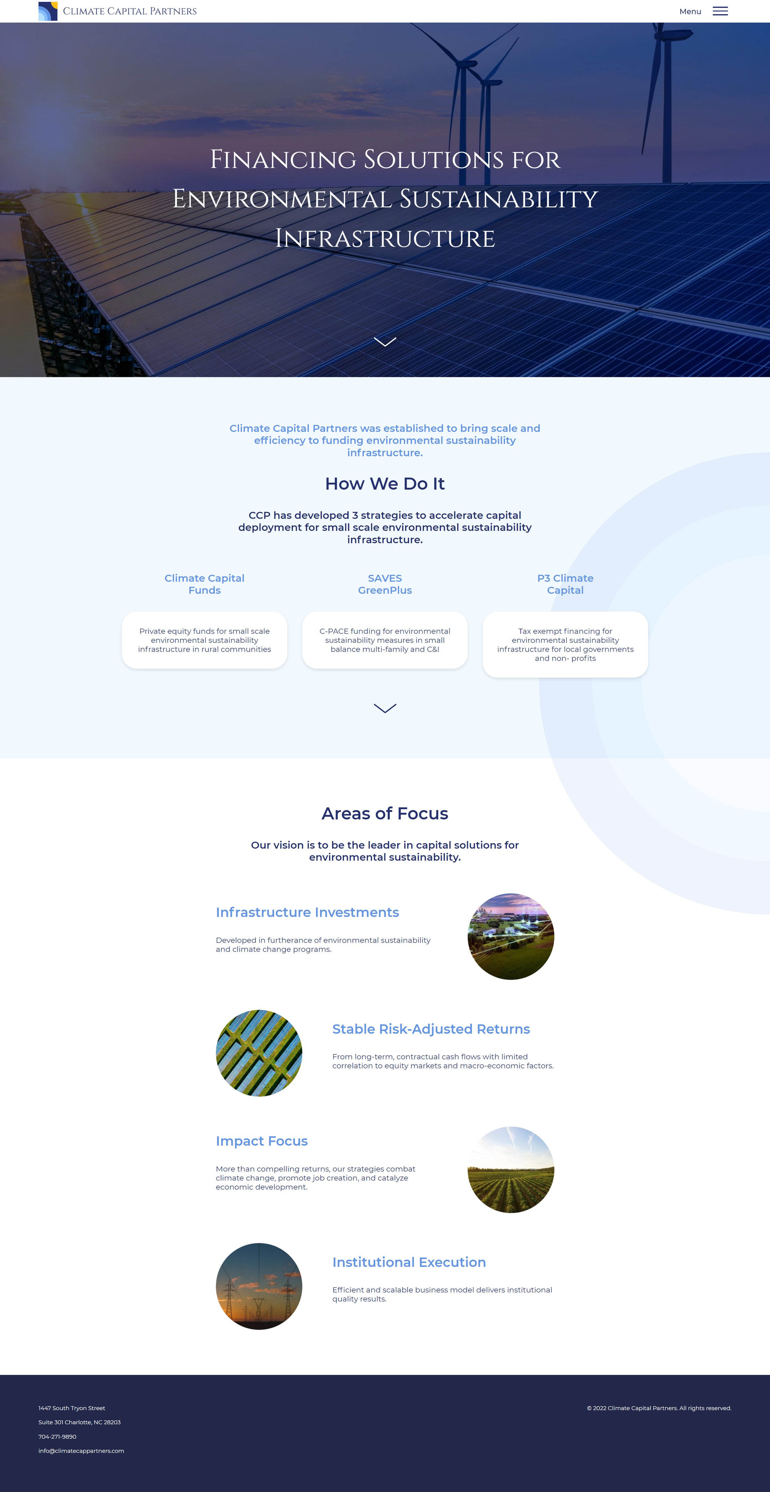 Climate Capital Partners was established to bring scale and efficiency to funding environmental sustainability infrastructure. CCP is an investment firm dedicated to combating climate change with economic development, job creation, and creating a positive impact in rural areas.